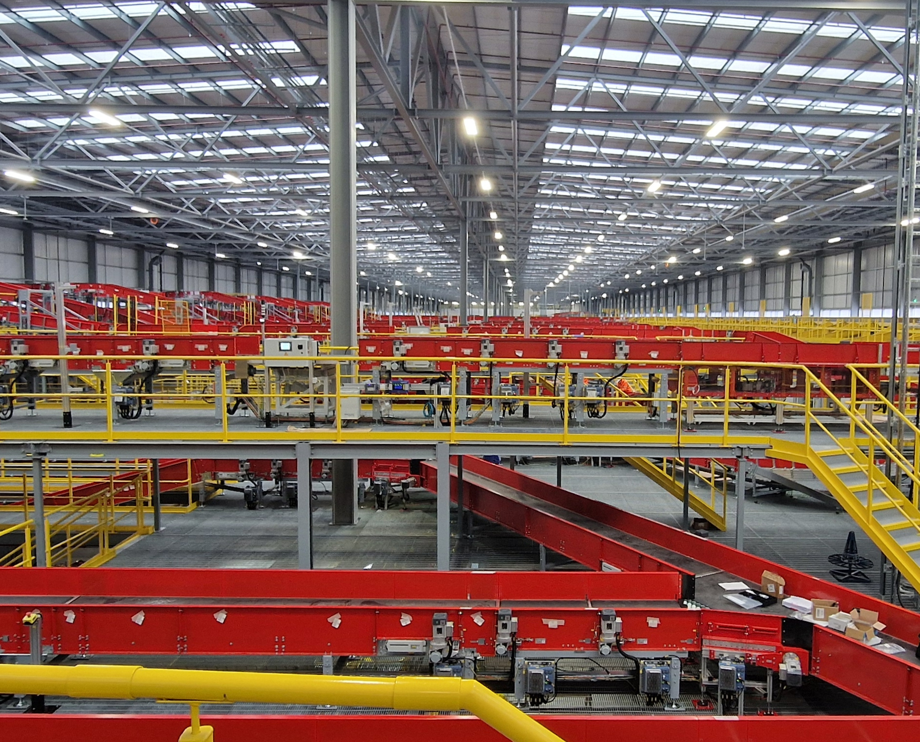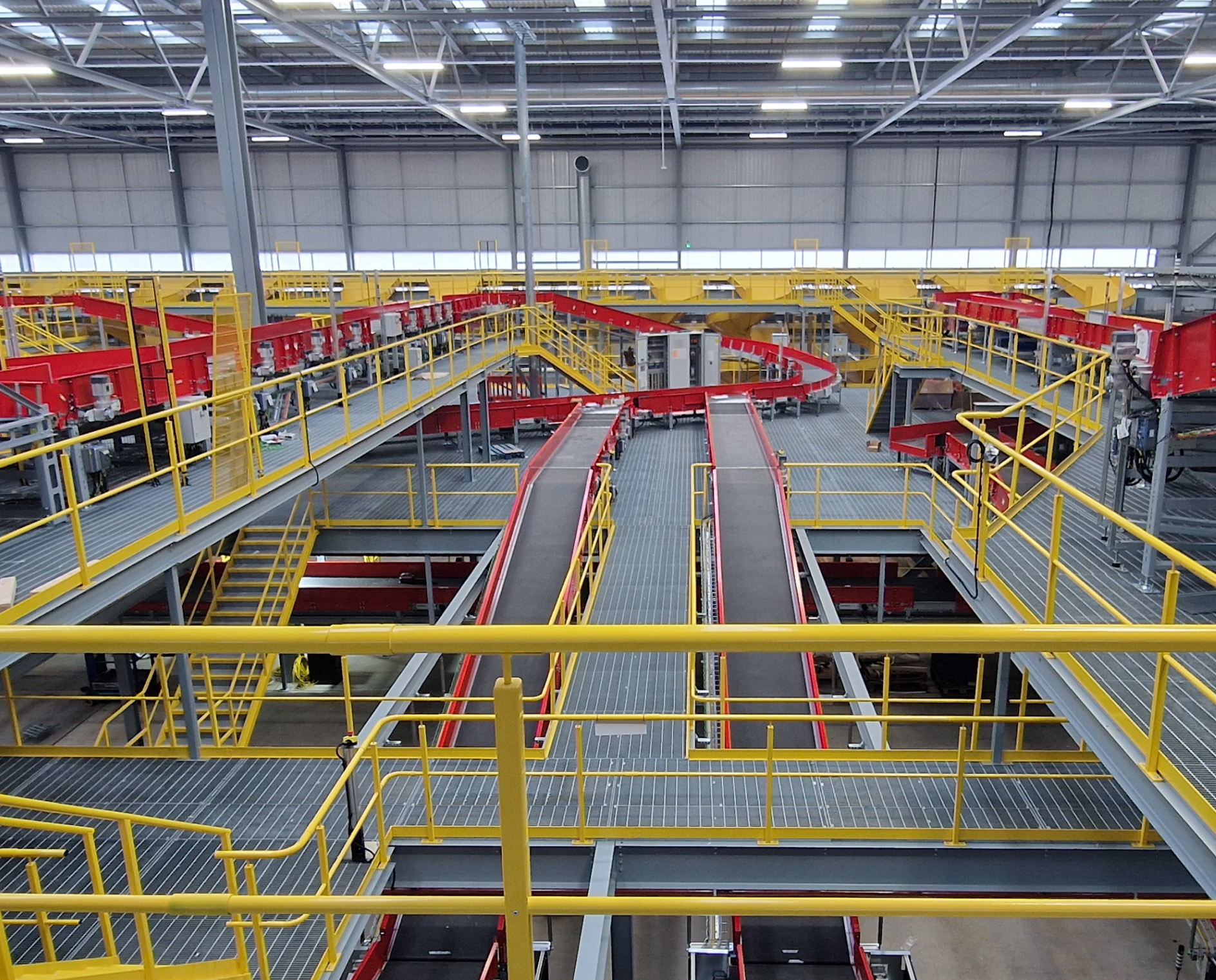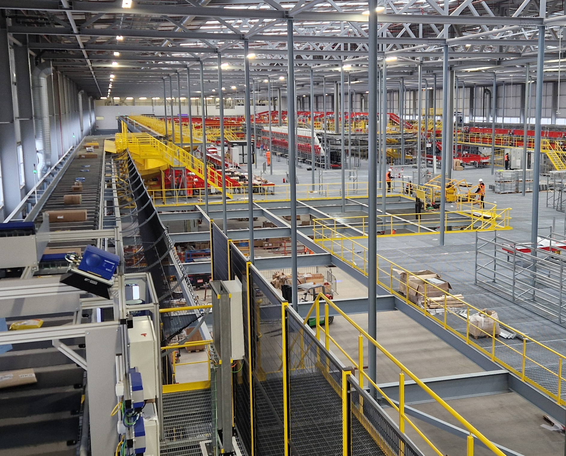 Amid rapid growth in parcel volumes and a major £560m UK expansion, DHL required a fully bespoke mezzanine solution for its new automated hub at Segro Park, Coventry. The brief demanded a suspended, column-free design to optimise forklift access, built to exceptionally tight tolerances to support sensitive weighing equipment, and delivered at speed to keep the wider project on track. The project called for a fully bespoke mezzanine design – not an off-the-shelf solution.